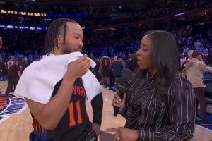 24直播网4月29日讯 NBA季后赛首轮G5,尼克斯126-97轻取老鹰,大比分3-2领先,布伦森赛后在场边接受了媒体采访,以下为采访全文。